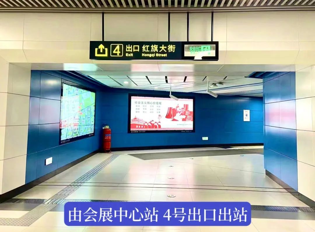 Take Metro Line 3 to the Convention and Exhibition Center Station, exit from Exit 4